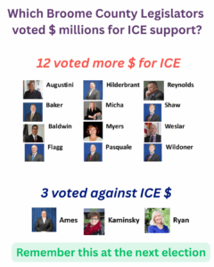 Local residents might press for an end of coopeation with ICE for financial as well as moral reasons: it’s costly. The federal government reimburses Sheriffs $110/day per person. Yet the cost per day for a person in the Broome jail is $264 (2025 budget/average daily population). Close the jail’s ICE pod, reduce the jail’s official capacity, and you eliminate $ 3 million in county spending. Stop the 287g contracts and nothing is changed. But stop incarceration agreements for those charged with federal crimes? County jails would be blocked from acting as ICE detention centers. But Hochul isn’t proposing that.