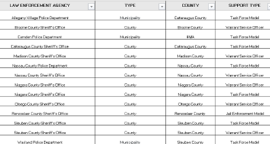 What Hochul’s order does propose is to stop local governments from signing 287g cooperation agreements with ICE. Yet 287g represents but a sliver of the large number of agreements and the vast integration of New York law enforcement agencies with ICE. Currently 287g agreements exist in 9 of the state’s 62 counties, signed by 14 of the 528 law enforcement agencies in the state. Of the 14, only 6 are Task Force agreements that authorize and train local officers to act as ICE agents. One is a Jail Model to house ICE detainees. Others authorize local officers to serve warrants to people in local jails.